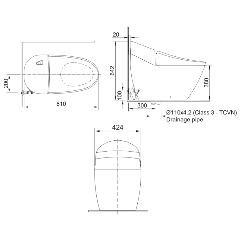 - Kích thước 810 x 642 x 424mm, phù hợp các không gian nhà tắm vừa và rộng rãi.