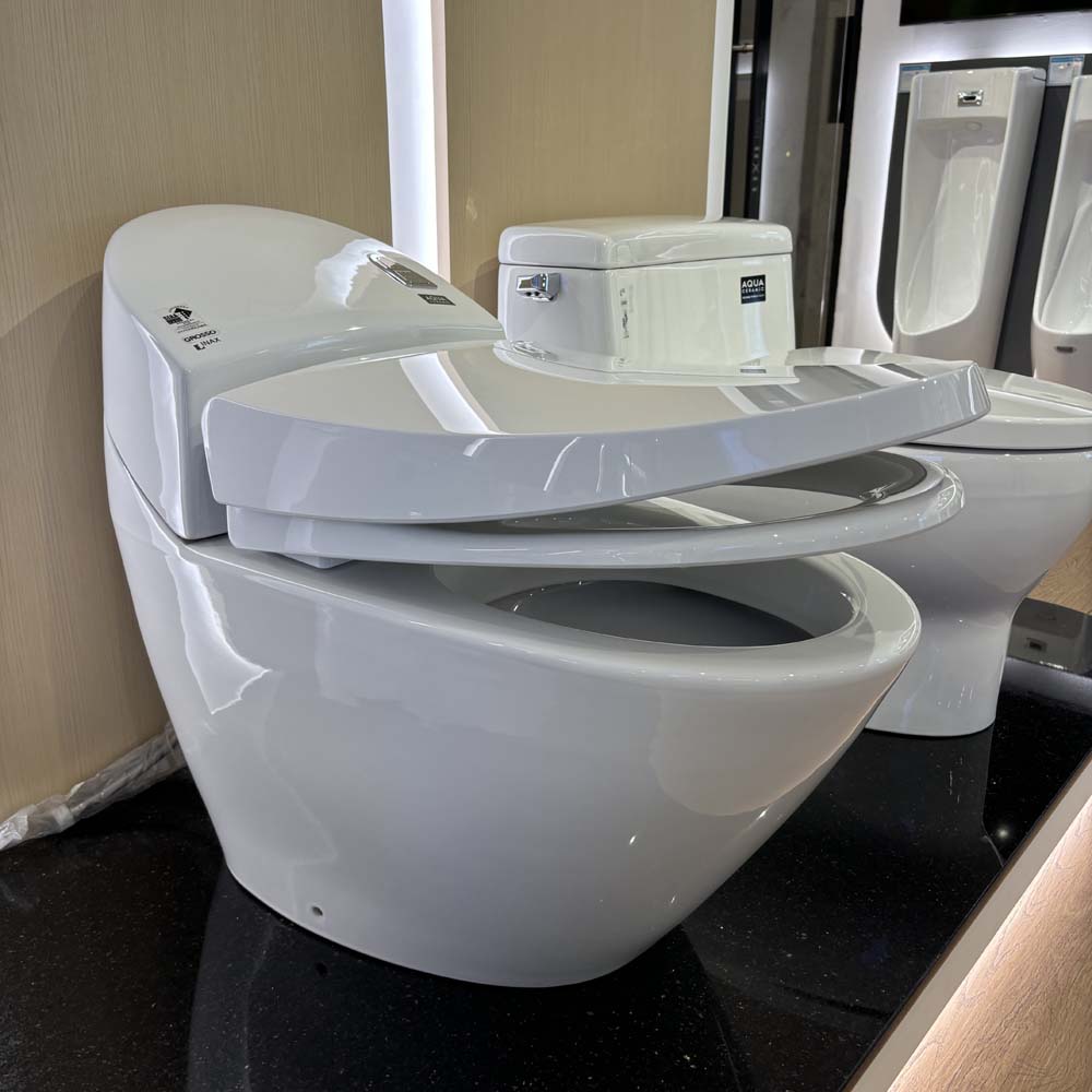 - Công nghệ AQUA CERAMIC trên bề mặt men sứ, tăng khả năng trắng sáng, chống bám bẩn