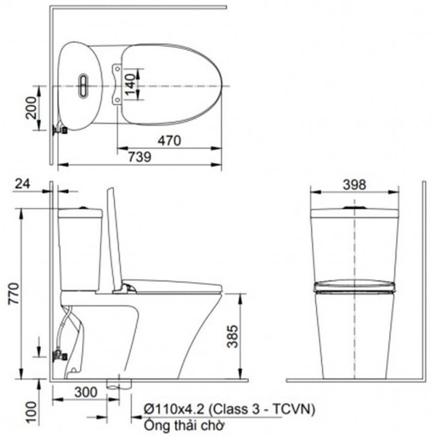 Bản vẽ Bồn Cầu 2 Khối INAX AC-700VAN: